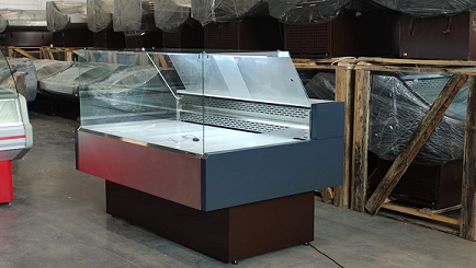 Холодильная витрина в аренду Арктика кубическая 1210 мм, температурный режим -5 +5 градусов, для различной охлажденной продукции, мяса, сыра, молока, рыбы, на выставку, в магазин и современного рынка, высота 1355 мм, глубина 1110 мм, глубина выкладки 800 мм